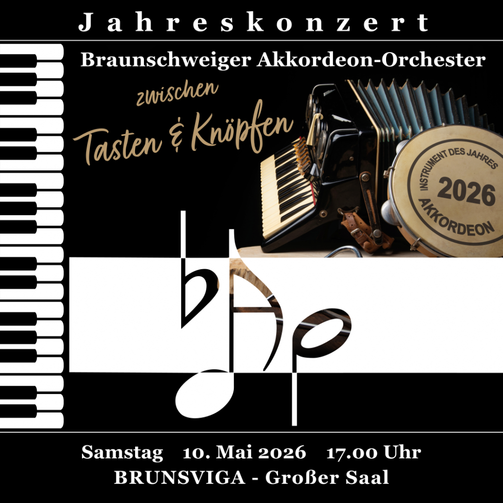 Dies nimmt das Braunschweiger Akkordeon-Orchester e.V. unter der Leitung von Anja Bremers zum Anlass, mit seinem neuen Programm den Facettenreichtum des Instrumentes und seine musikalische Vielfalt lebendig werden zu lassen. Begeben Sie sich unter anderem auf die Spuren von König Artus und den Rittern der Tafelrunde, die der zeitgenössische Komponist Ian Watson in seiner programmatischen Suite „The Legend of King Arthur“ musikalisch zum Leben erweckt hat. Aber auch der gefühlvolle, rhythmische Tango-Walzer „Chiquilín de Bachín“ von Astor Piazzolla und Horacio Ferrer darf bei diesem Motto nicht fehlen.